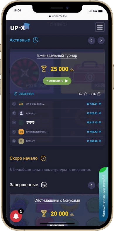 Турниры UP X — соревнования, созданные компанией в рамках сотрудничества с ведущими игровыми провайдерами. Информация об актуальных состязаниях доступны в соответствующем разделе официального сайта казино. В каждом мероприятии предусмотрены определенные выигрыши и квалификационные требования, обязательные к исполнению.