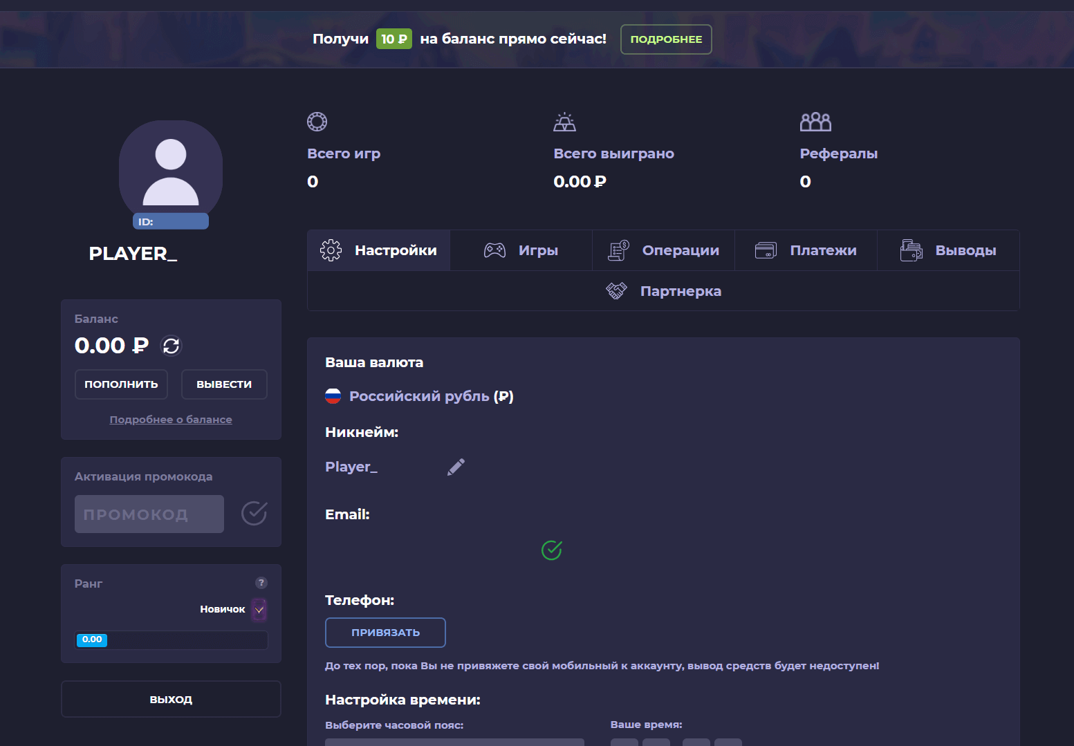 Также гемблеры могут проводить настройки безопасности, получать бонусы и выполнять другие функции.