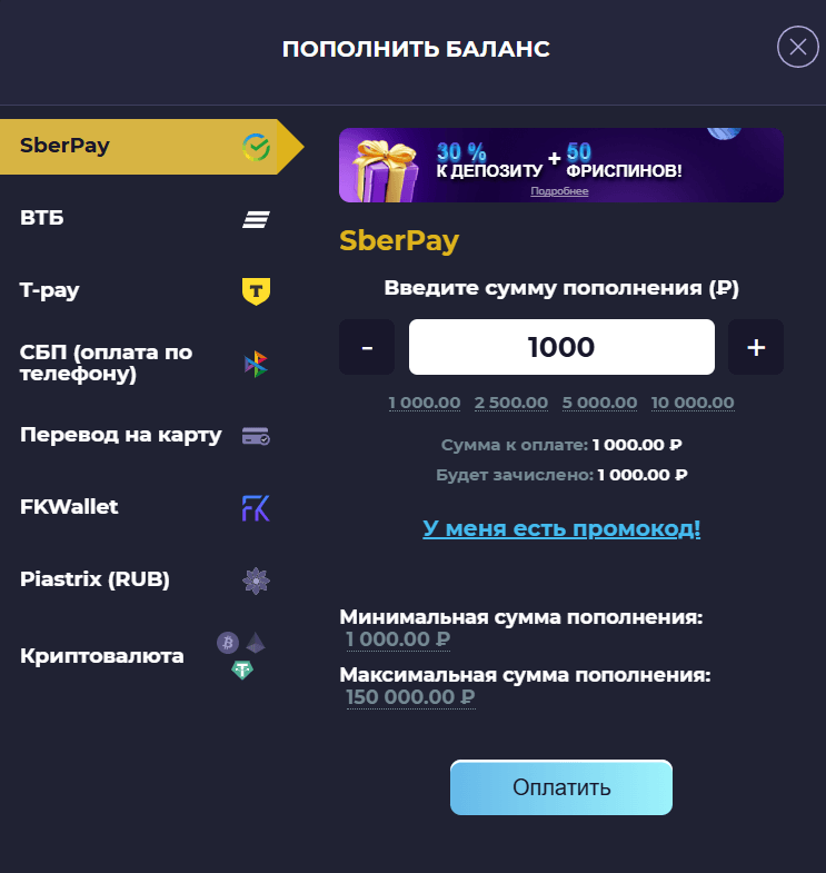 | 🛠️ Провайдеры | Pragmatic Play, Evolution, Spinomenal, 3 Oaks Gaming, PG Soft, Endorphina, No Limit City, PopiPlay, Hacksaw Gaming, NetGaming, BGaming, Playson, Superslotto Slots, Fazi, ZeusPlay, GameArt, SA Gaming, Red Tiger, Triple Chery, Red Rake, Play’N’Go, UpGaming, Tom Horn, Amusnet, Fugaso, Microgaming, Quickspin, HoGaming, Belatra, CQ9, Ezugi, OnlyPlay, VoltEnt, Edict, Platupus, Yggdrasil, Kalamba KA Gaming, BetSoft и другие |